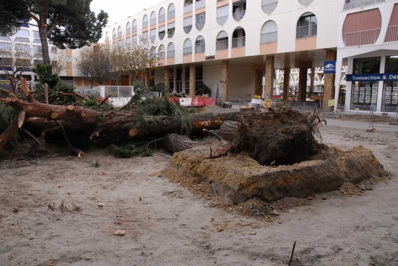 On aurait pu souhaiter que les préconisations de Jean BALLADUR soient suivies et même améliorées. Malheureusement faisant suite à de précédents abattages, ce lundi 16 septembre 2013 on constate que 2 pins ont été abattus au croisement de l'avenue de Melgueil et de l'avenue de l'Europe.