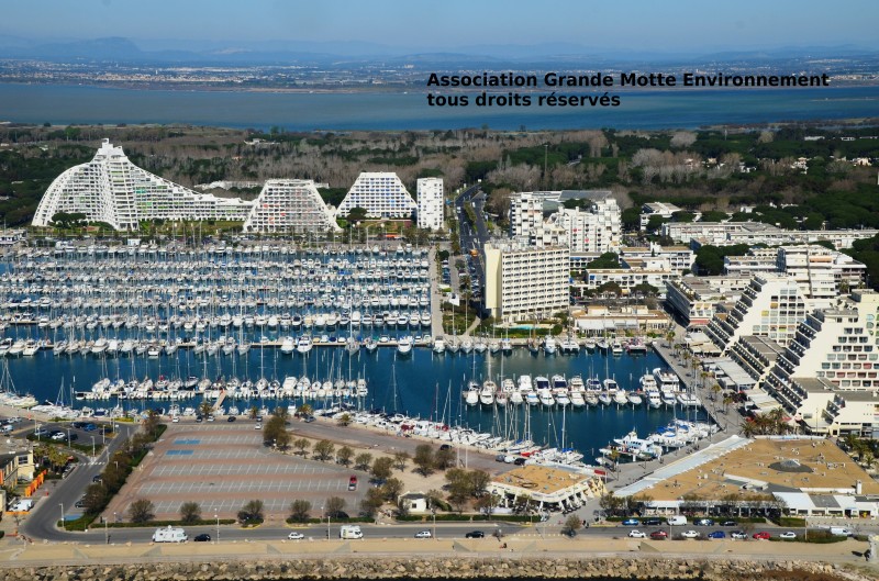 Rappelons que notre ville a été bâtie sur des marécages, vue d'avion, on réalise mieux que la Grande Motte est non seulement sur l'eau mais aussi cernée par celle-ci, coincée entre l'Etang du Ponant alimenté par le Vidourle, l'Etang de l'Or et la mer. Et l'on voit bien le danger innérant à cette situation : l'innondation et/ou la submersion marine.