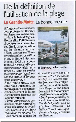 N’oublions pas que la plage du Grand Travers cumule quasiment toutes les dispositions règlementaires en matière de protection de l’environnement (RAMSAR, ZICO, Natura 2000, Znief,…..) et qu’elle est classée en espace naturel remarquable au sens de la loi littoral et inscrite au SCOT du Pays de l’Or comme tel (le SCOT s’impose au PLU).