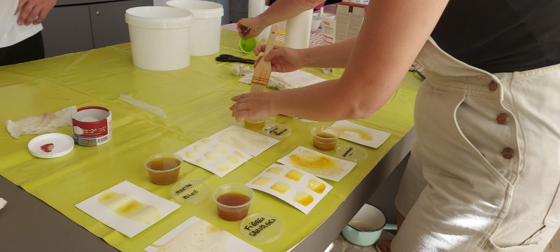 En compagnie de Myrtille Bouvret, artiste plasticienne, nous avons pu découvrir le 17 mai dernier, l'univers merveilleux des couleurs issues du monde végétal et minéral, lors d'un atelier participatif au phare de l'Espiguette.