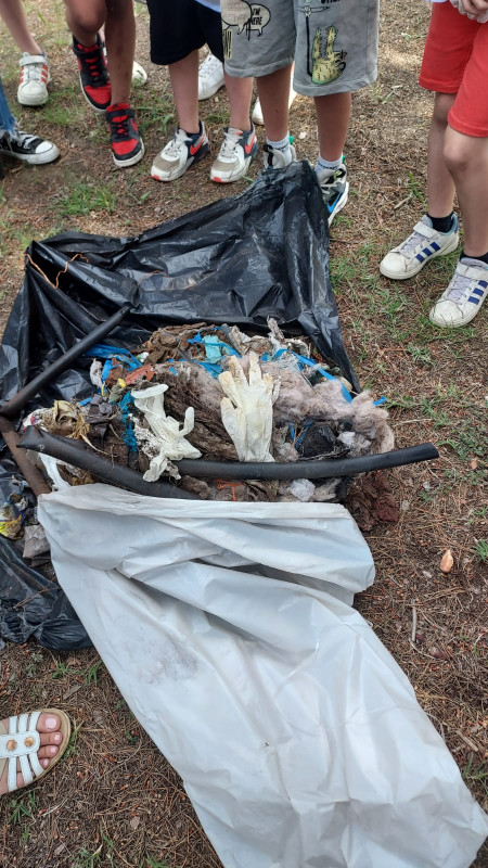 Nous avons accompagné des élèves de primaire dans le nettoyage de la presqu'ile du Ponant. Entourée de pins et dotée d'un sentier découverte écologique avec des points de vue charmants sur le plan d'eau et de ruches, elle resserre pourtant en son coeur une colline de déchets ménagers et du bâtiment enfouis 20 ans. Un monstre endormi d'où remontent à la surface des cables électriques, des plastiques, des objets divers et des morceaux de bitume ou de béton. Les enfants n'ont fait qu'effleurer le sols et ont pourtant été très impressionnés par les dégâts provoqués par l'homme plusieurs décennies avant eux et les traces laissées. Ils ont également été sensibilisés à la réduction et au tri des déchets.