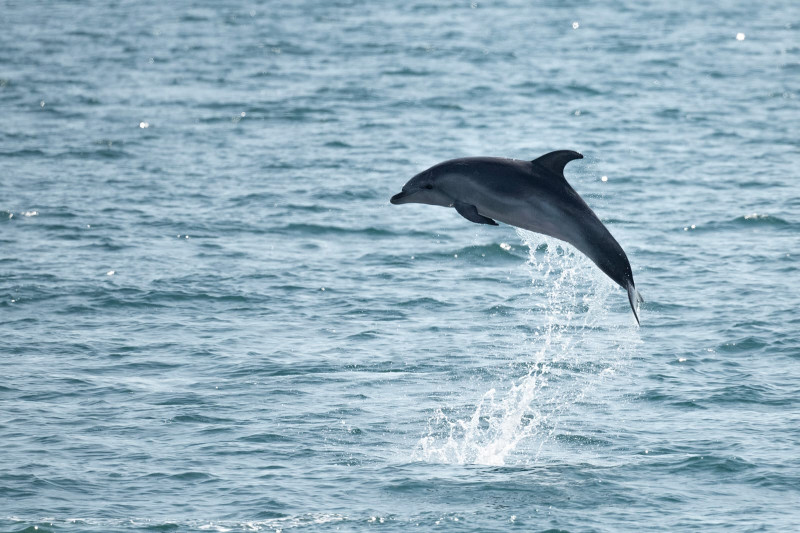 Nous les observons avec émerveillement de très près pendant plus d'une heure le long et autour du bateau, en situation de pêche ou nous gratifiant joyeusement de quelques sauts acrobatiques, de beaux instants avec un temps idéal.